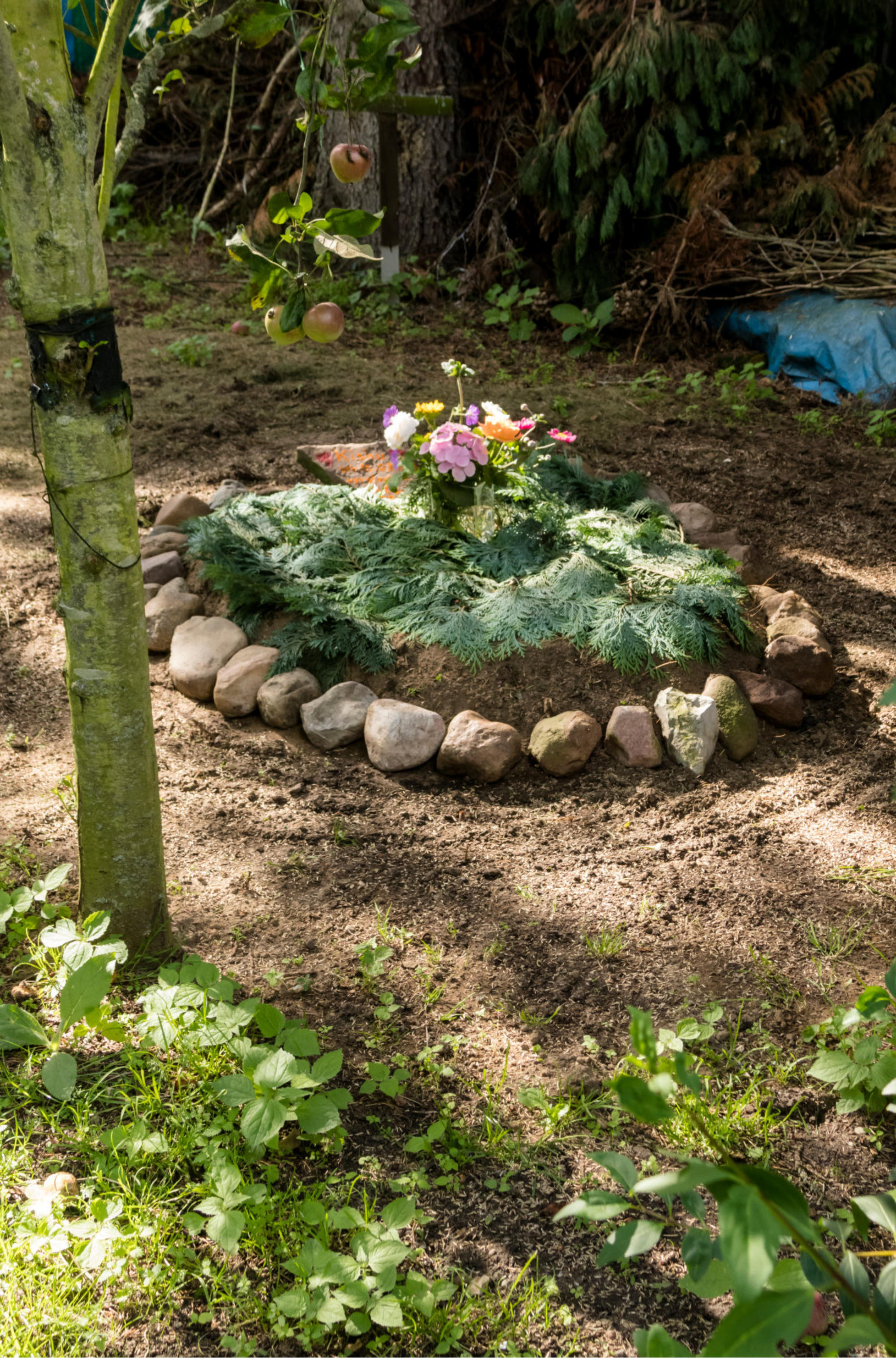 Uschi gestaltete noch einen wunderschönen Grabstein für unsere Kishu.